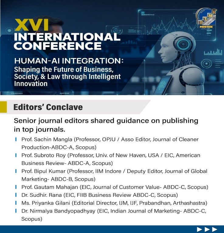 The conference brought together academicians, researchers, and professionals from India and abroad to discuss ethical and human-centric Artificial Intelligence in management and allied disciplines.
